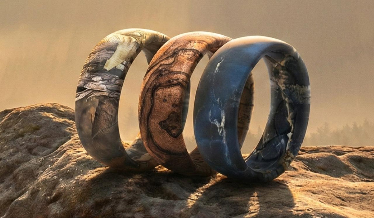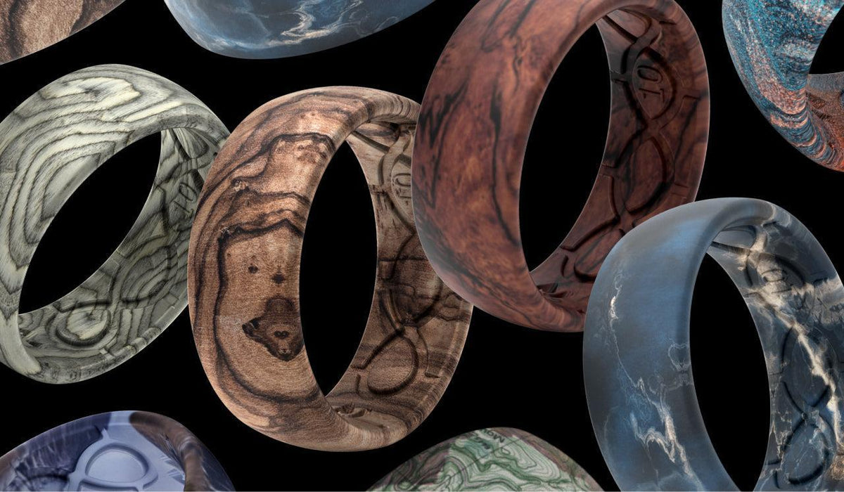 Groove Rings are high-quality pattern or a specialized elastomer blend. This allows you to have the aesthetic of wood or metal with the safety and comfort of a flexible ring.