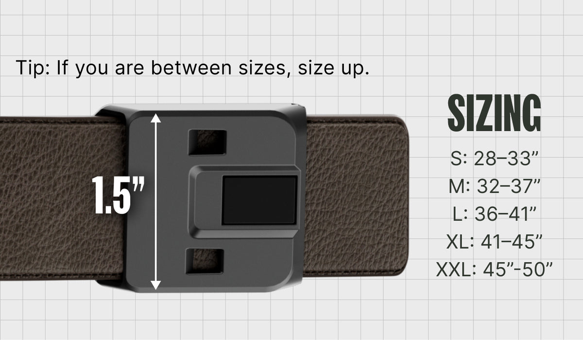 The Max Leather Belt is the only style in our lineup that runs a bit small. If you fall between two sizes (such as 36–38), we always recommend sizing up. For example, a size Large is typically suggested for those in that range to ensure you have enough "room to groove."