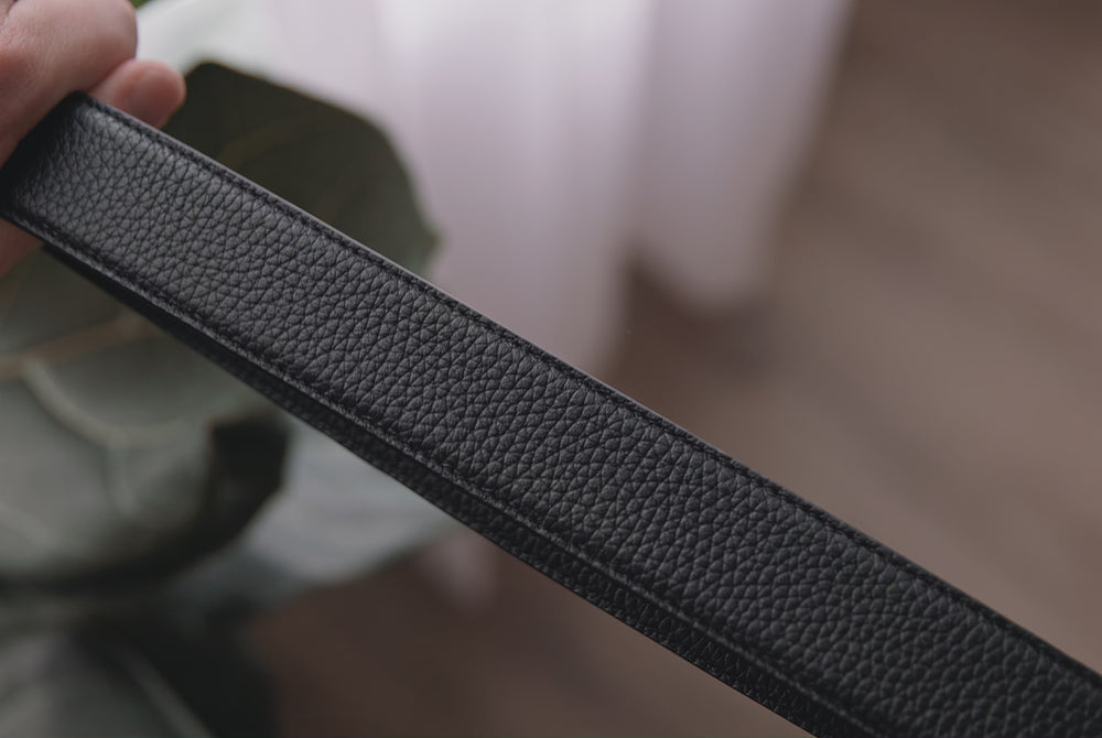 Unlike standard rigid leather, our "Stretch-Tech" is built directly into the full-grain leather webbing. You get the classic look of a leather belt with added flexibility and comfort that moves with you throughout the day.